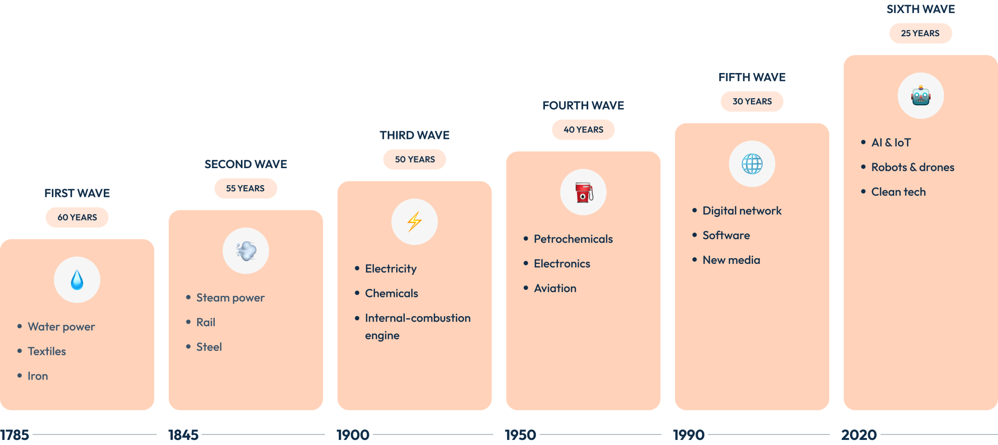 Wave 6 is projected to create $1.5 to $3 trillion in value over the next 10 years.